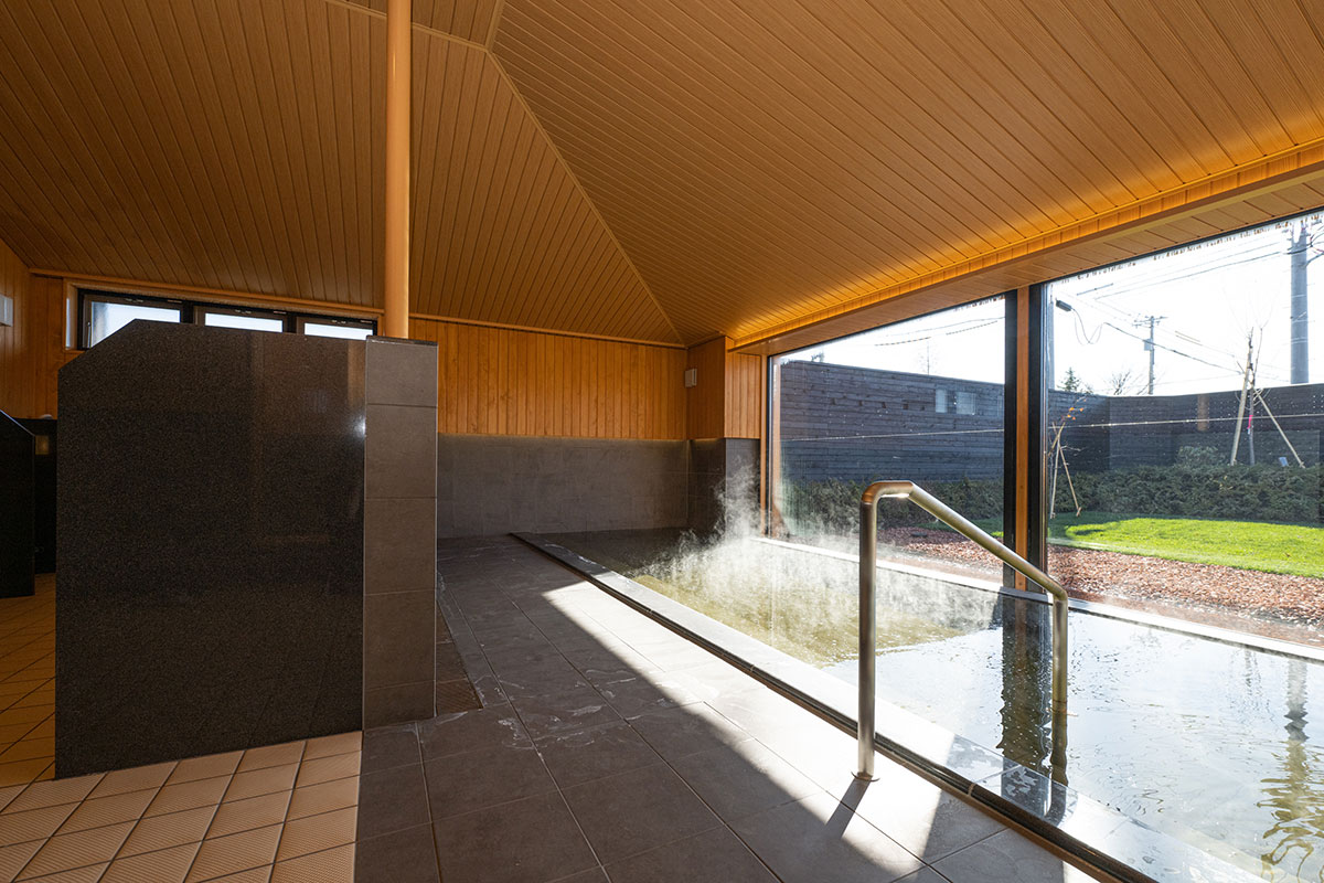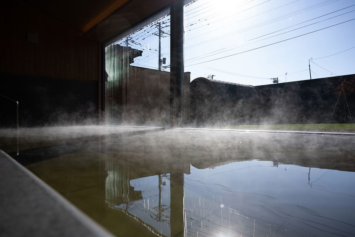 源泉かけ流しの弱アルカリ性温泉です。ゆったりとした内湯と星空を眺めながらの外湯。そして丸い樽型が特徴的なバレルサウナをお楽しみいただけます。暖かな木材の質感、豊かな木の香りにつつまれながら、ゆっくり過ぎる癒しの時間をご堪能ください。