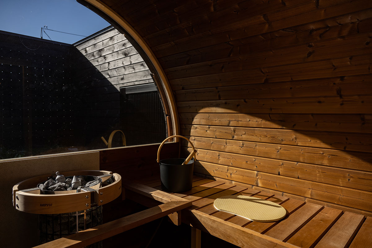 サウナ発祥の国フィンランドで昔から愛されている丸い樽型(バレル)サウナ。遊び心ある丸い形状はとても機能的で熱を均一に保つことに優れています。ロウリュ時の熱が効率的に室内に循環することから、より快適にサウナを楽しむことができます。